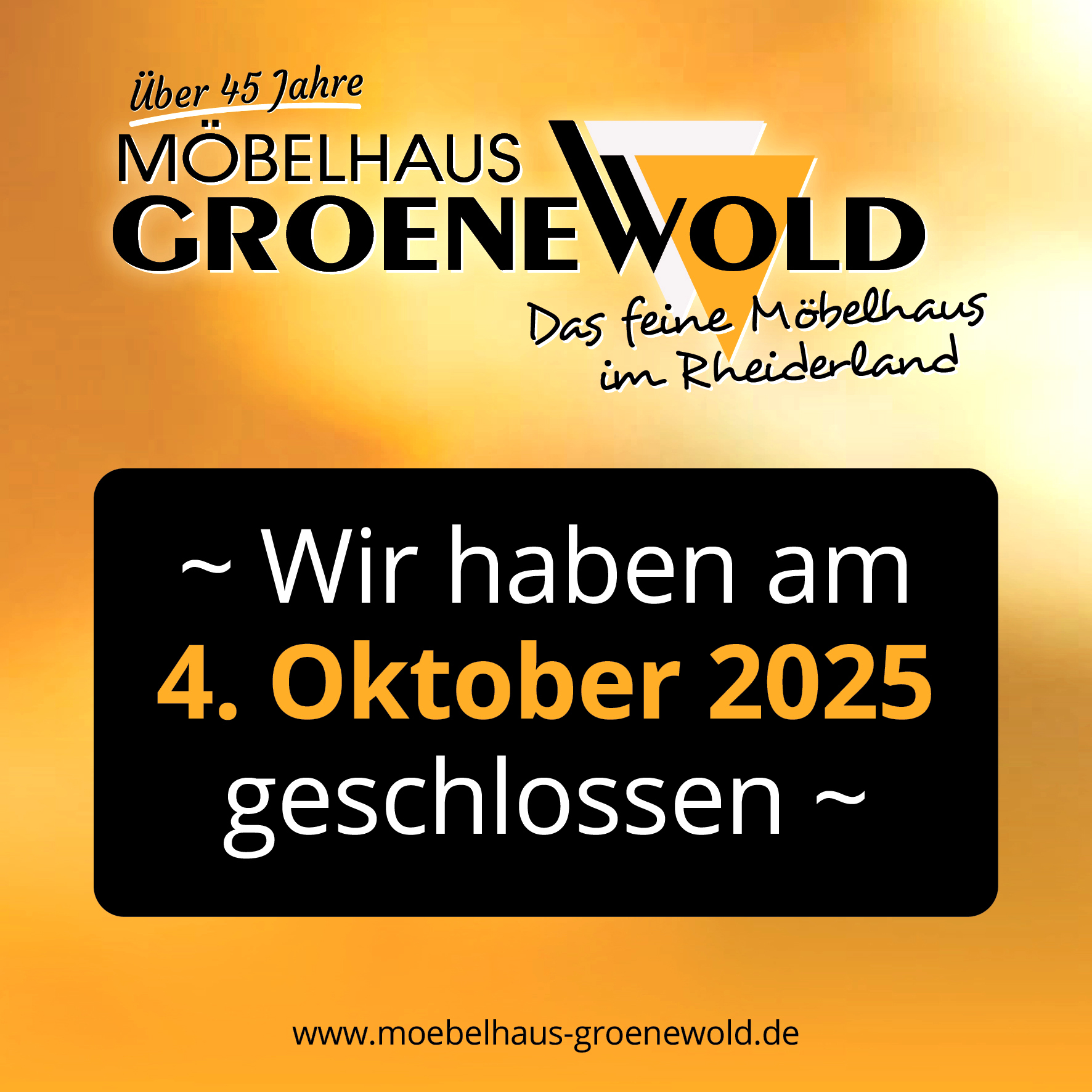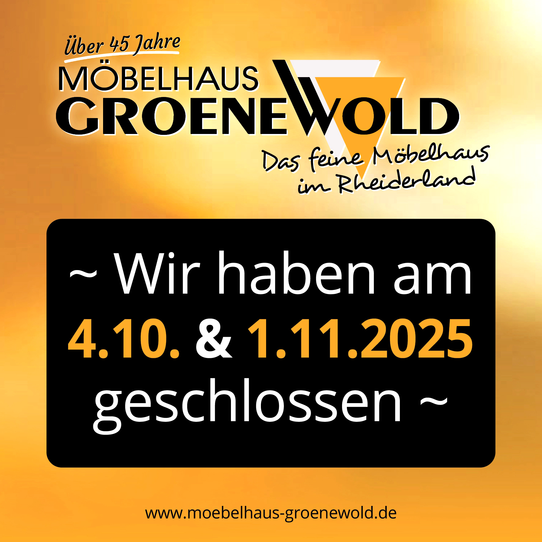 Den Samstag nach dem „Tag der deutschen Einheit“ sowie den Samstag nach dem „Reformationstag“ haben wir unser Möbelgeschäft geschlossen.