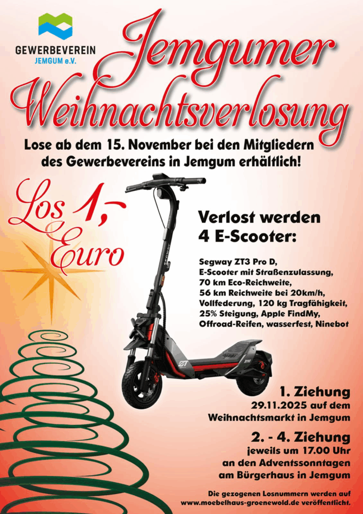 Seit dem 15. November sind Lose bei den Mitgliedern des Gewerbevereins in Jemgum erhältlich – für nur 1 Euro pro Los.